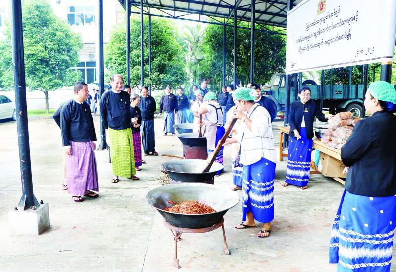 နိုင်ငံတော်ကာကွယ်ရေးနှင့် လုံခြုံရေးတာဝန်များကို ရဲဝံ့စွာစွမ်းစွမ်းတမံ ထမ်းဆောင်လျက်ရှိသည့် ရှေ့တန်းရောက်တပ်မတော်သားများနှင့် လုံခြုံရေးတပ်ဖွဲ့ဝင်များကို စေတနာရှင်ပြည်သူများနှင့် ဝန်ကြီးဌာနအသီးသီးမှ ဝန်ထမ်းမိသားစုများက အလှူငွေများနှင့် စားသောက်ဖွယ်ရာများ ပေးပို့လှူဒါန်းလျက်ရှိရာ ပြည်ထောင်စုတရားလွှတ်တော်ချုပ် ဝန်ထမ်းမိသားစုများကလည်း ပါဝင်လှူဒါန်းရန်အတွက် မွန်မြတ်သည့်စိတ်စေတနာဖြင့် စုပေါင်းချက်ပြုတ်ကြော်လှော်ကြပြီး ကိုယ်တိုင် စိတ်အားထက်သန်စွာဖြင့် ပြင်ဆင်ထုပ်ပိုးနေမှုများကို ပြည်ထောင်စုတရားသူကြီးချုပ်နှင့် ပြည်ထောင်စုတရားလွှတ်တော်ချုပ် တရားသူကြီးများ၊ အမြဲတမ်းအတွင်းဝန်၊ ညွှန်ကြားရေးမှူးချုပ်နှင့် တာဝန်ရှိသူများက ဩဂုတ် ၂၃ ရက်နံနက်ပိုင်းတွင် လိုက်လံကြည့်ရှုအားပေးခဲ့ကြသည်။