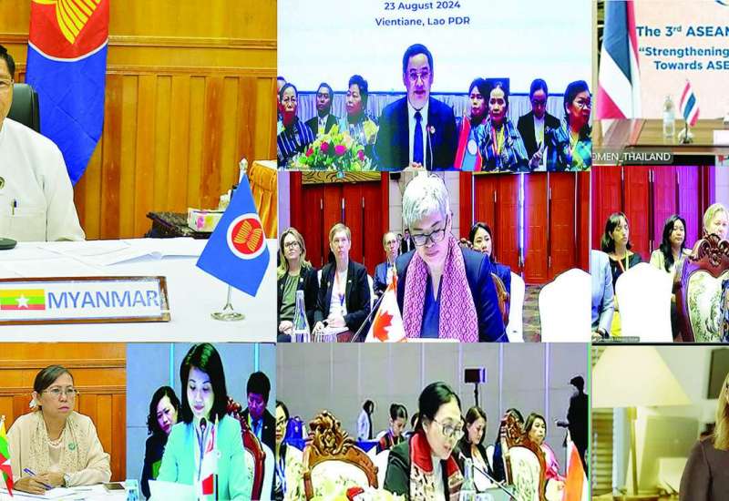 တတိယအကြိမ်မြောက် အာဆီယံ အမျိုးသမီးခေါင်းဆောင်များညီလာခံ (3rd ASEAN Women Leaders’ Summit) ကို ယနေ့တွင် Video Conferencing စနစ်ဖြင့် လာအိုနိုင်ငံမှ အိမ်ရှင်အဖြစ် လက်ခံကျင်းပရာ အာဆီယံအမျိုးသမီးရေးရာဝန်ကြီးများအဆင့် Focal Point ဖြစ်သူ လူမှုဝန်ထမ်း၊ ကယ်ဆယ်ရေးနှင့်ပြန်လည်နေရာချထားရေးဝန်ကြီးဌာန ပြည်ထောင်စုဝန်ကြီး ဒေါက်တာစိုးဝင်း၊ အာဆီယံအမျိုးသမီးကော်မတီ (ACW) Focal Point နှင့် အာဆီယံအမျိုးသမီး၊ ငြိမ်းချမ်းရေးနှင့်မှတ်ပုံတင်ကဏ္ဍ (AWPR) အဖွဲ့ဝင် လူမှုဝန်ထမ်းဦးစီးဌာနမှ ညွှန်ကြားရေးမှူးချုပ်၊ အာဆီယံအမျိုးသမီး အခွင့်အရေးများဆိုင်ရာ ကိုယ်စားလှယ် မြန်မာနိုင်ငံအမျိုးသမီး ရေးရာအဖွဲ့ချုပ်ဥက္ကဋ္ဌနှင့် ဒုတိယညွှန်ကြားရေးမှူးချုပ်၊ ဘာသာရပ်ဆိုင်ရာ တာဝန်ခံများက Online ဖြင့် တက်ရောက်ကြသည်။