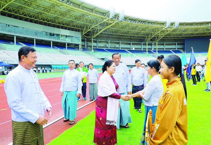 ၂၀၂၄ ခုနှစ် ပြည်နယ်နှင့်တိုင်းဒေသကြီး အသက် (၁၈) နှစ်အောက် ပြေးခုန်ပစ်ပြိုင်ပွဲ ဖွင့်ပွဲအခမ်းအနားကို ယနေ့နံနက်ပိုင်းတွင် နေပြည်တော်ရှိ ဝဏ္ဏသိဒ္ဓိဘောလုံးကွင်း၌ ကျင်းပရာ နိုင်ငံတော်စီမံအုပ်ချုပ်ရေးကောင်စီအဖွဲ့ဝင်များ တက်ရောက်ကြည့်ရှုအားပေးကြသည်။