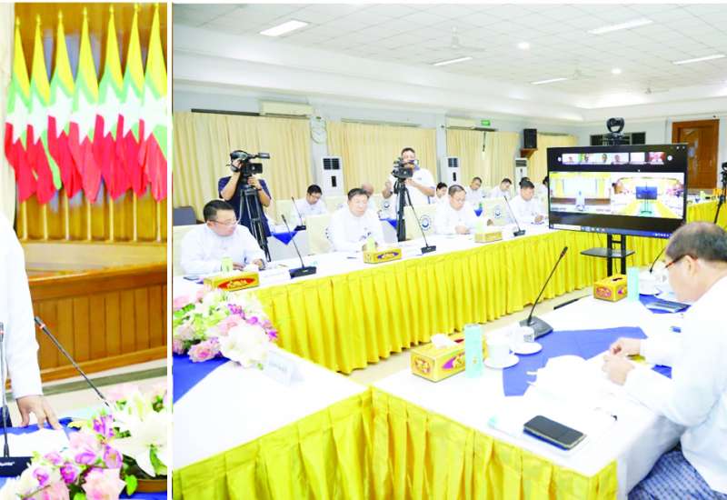 စက်ရုံ၊ အလုပ်ရုံများတွင် အလုပ်ရှင်၊ အလုပ်သမားများ၏ အခက်အခဲများနှင့်ပတ်သက်၍ အစိုးရ၊ အလုပ်ရှင်နှင့် အလုပ်သမား သုံးပွင့်ဆိုင်လုပ်ငန်းညှိနှိုင်းအစည်းအဝေးကို ယနေ့နံနက်ပိုင်းက အလုပ် သမားဝန်ကြီးဌာန အစည်းအဝေးခန်းမ၌ Virtual စနစ်ဖြင့်ကျင်းပရာ ပြည်ထောင်စုဝန်ကြီး ဦးမြင့်နောင်၊ ဒုတိယဝန်ကြီးဦးဝင်းရှိန်၊ အမြဲတမ်းအတွင်းဝန်၊ ညွှန်ကြားရေးမှူးချုပ်များ၊ ခုံသမာဓိကောင်စီဝင်များ၊ ခုံသမာဓိအဖွဲ့ဝင်များ၊ အလုပ်ရှင်ကိုယ်စားလှယ်များ၊ အလုပ်သမားကိုယ်စားလှယ်များနှင့် စက်မှုဇုန်အသီးသီးမှကိုယ်စားလှယ်များ တက်ရောက်ကြသည်။