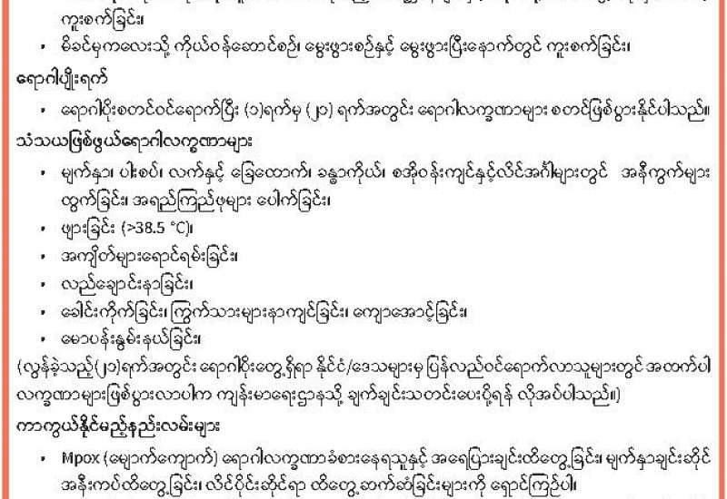 ကမ္ဘာ့ကျန်းမာရေးအဖွဲ့မှ (၂၀၂၄) ခုနှစ်၊ ဩဂုတ်လ (၁၄) ရက်နေ့တွင် Mpox (မျောက်ကျောက်)ရောဂါ ကူးစက်မှုအား နိုင်ငံတကာပြည်သူ့ကျန်းမာရေး အရေးပေါ်အခြေအနေအဖြစ်ကြေညာခဲ့ပါသည်။