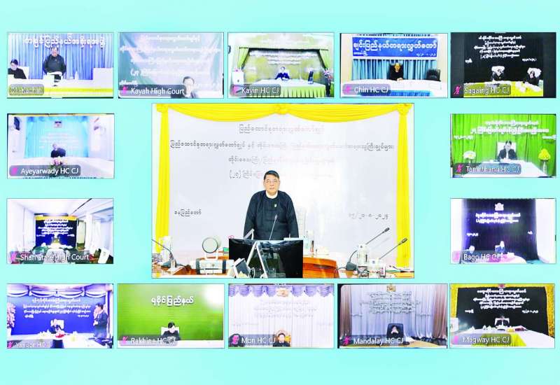 ပြည်ထောင်စုတရားလွှတ်တော်ချုပ်နှင့် တိုင်းဒေသကြီး/ ပြည်နယ်တရားလွှတ်တော်များ၏ (၂၇) ကြိမ်မြောက် ညှိနှိုင်းအစည်းအဝေးကို ယနေ့နံနက် ၈ နာရီက နေပြည်တော်ရှိ ပြည်ထောင်စုတရားလွှတ်တော်ချုပ်၌ ဗီဒီယိုကွန်ဖရင့်စနစ်ဖြင့် ကျင်းပသည်။