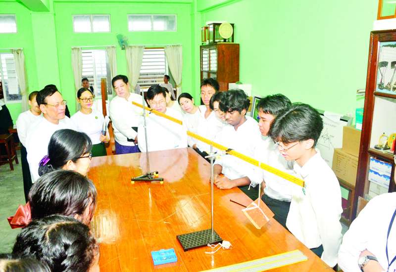 ပညာရေးဝန်ကြီးဌာန ဒုတိယဝန်ကြီး ဒေါက်တာဇော်မြင့်သည် ယမန်နေ့နံနက်ပိုင်းတွင် ရန်ကုန်မြို့ ကမာရွတ်မြို့နယ် အမှတ်(၂)အခြေခံပညာအထက် တန်းကျောင်းသို့ရောက်ရှိပြီး ကျောင်းသူများ ကဗျာလွတ်အကလေ့ကျင့်နေမှု၊ Language Lab၊ ဓာတုဗေဒလက်တွေ့ခန်း၊ ရူပဗေဒလက်တွေ့ခန်း၊ ဇီဝဗေဒလက်တွေ့ခန်းများတွင် လက်တွေ့သင်ယူ လေ့ကျင့်နေကြသည့် ကျောင်းသားကျောင်းသူများကို လှည့်လည်ကြည့်ရှုအားပေးသည်။