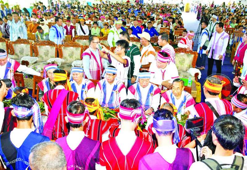 ကရင်ရိုးရာ ဝါခေါင်လချည်ဖြူဖွဲ့မင်္ဂလာအခမ်းအနားကို ယနေ့နံနက်ပိုင်းက ရန်ကုန်တိုင်းဒေသကြီး သာကေတမြို့နယ် တိုင်းရင်းသားကျေးရွာရှိ ပြည်ထောင်စုခန်းမ၌ ကျင်းပသည်။