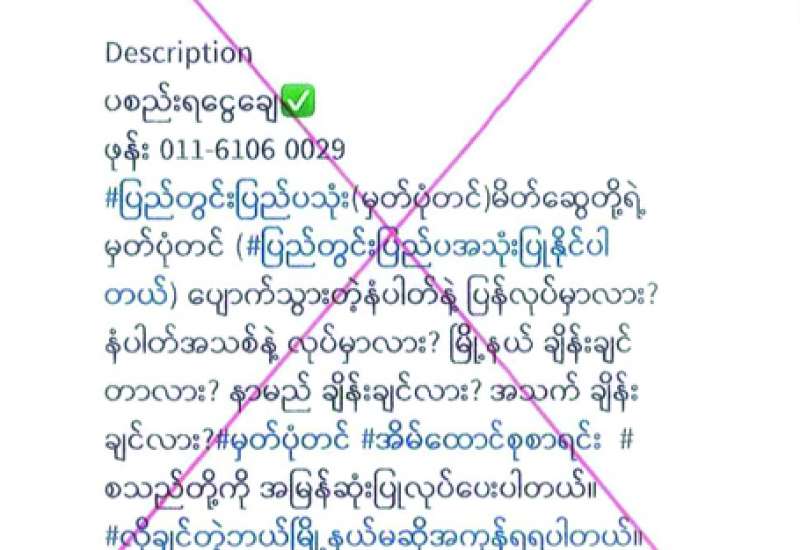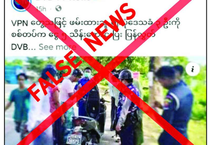 ဧရာဝတီတိုင်းဒေသကြီး ဖျာပုံမြို့နယ်တွင် ဇူလိုင် ၂၄ ရက်နှင့် ၂၅ ရက် က ဒေသခံပြည်သူများ၏ လက်ကိုင်ဖုန်းများကို လုံခြုံရေးတပ်ဖွဲ့ဝင်များက စစ်ဆေးခဲ့ပြီး VPN Application တွေ့ရှိသည့် ပြည်သူသုံးဦးကို ဖမ်းဆီးခဲ့ကြောင်းနှင့် ဩဂုတ် ၁၀ ရက်က အဆိုပါပြည်သူသုံးဦးကို တစ်ဦးလျှင် ငွေကျပ် ၅ သိန်းတောင်းပြီး ပြန်လွှတ်ပေးခဲ့ကြောင်း တရားမဝင်ပြည်ဖျက်မီဒီယာများက လုပ်ကြံရေးသား ဝါဒဖြန့်ဝေနေသည်ကို တွေ့ရှိရသည်။