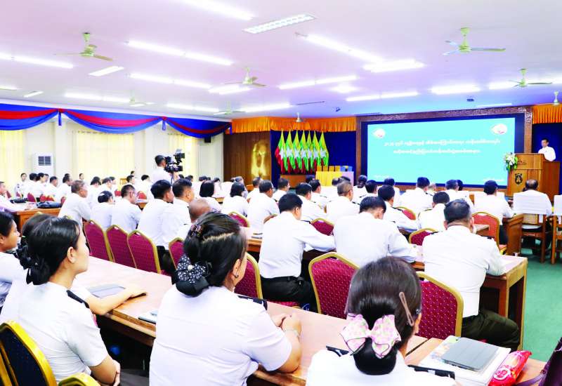 နိုင်ငံ့ဝန်ထမ်း တက္ကသိုလ် (အောက်မြန်မာပြည်) စာရေးဝန်ထမ်းကြီးကြပ်သင်တန်း အမှတ်စဉ်(၉၆) သင်တန်းဖွင့်ပွဲအခမ်းအနားကို အုန်းတောခန်းမ၌ aယနေ့နံနက် ၈ နာရီတွင် ကျင်းပရာ ဒုတိယပါမောက္ခချုပ်(စီမံ ခန့်ခွဲရေး) ဒေါ်မူမူမြင့်က သင်တန်းဖွင့်မိန့်ခွန်းပြောကြားသည်။