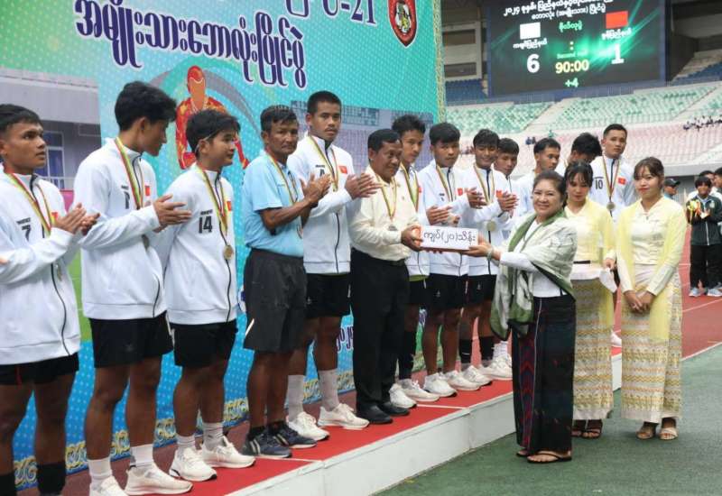 ၂၀၂၄ ခုနှစ် ပြည်နယ်နှင့်တိုင်းဒေသကြီး အသက် ၂၁ အောက် အမျိုးသားဘောလုံးပြိုင်ပွဲ ဗိုလ်လုပွဲနှင့် ဆုချီးမြှင့်ခြင်းအခမ်းအနားကို ယနေ့မွန်းလွဲပိုင်းတွင် နေပြည်တော်ရှိ ဝဏ္ဏသိဒ္ဓိဘောလုံးကွင်း၌ကျင်းပရာ နိုင်ငံတော်စီမံအုပ်ချုပ်ရေးကောင်စီအတွင်းရေးမှူး ဒုတိယဗိုလ်ချုပ်ကြီး အောင်လင်းဒွေး တက်ရောက်ကြည့်ရှုအားပေးပြီး ဆုများပေးအပ်ချီးမြှင့်သည်။