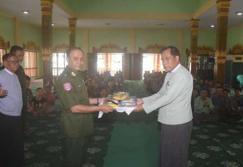 ဧရာဝတီတိုင်းဒေသကြီး၊ ကျောင်းကုန်းမြို့၊ အမှတ် (၂) ရပ်ကွက်၊ ပြည်လုံးချမ်းသာဘုရားဝန်းအတွင်းတွင် ရေဘေးအန္တရာယ်ရှိသည့်နေရာများမှ ကြိုတင်ပြောင်းရွှေ့ရောက်ရှိလာသည့် အိမ်ထောင်စုများအား ယနေ့မွန်းလွဲပိုင်းတွင် အနောက်တောင်တိုင်းစစ်ဌာနချုပ် တိုင်းမှူး ဗိုလ်ချုပ်ဝေလင်းနှင့် အဖွဲ့ဝင်များက သွားရောက်တွေ့ဆုံ၍ ထောက်ပံ့ပစ္စည်းများနှင့် စားသောက်ဖွယ်ရာများ ပေးအပ်သည်။