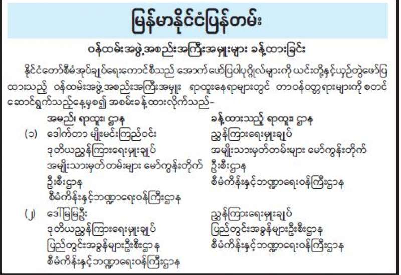 ဝန်ထမ်းအဖွဲ့အစည်းအကြီးအမှူးများ ခန့်ထားခြင်း