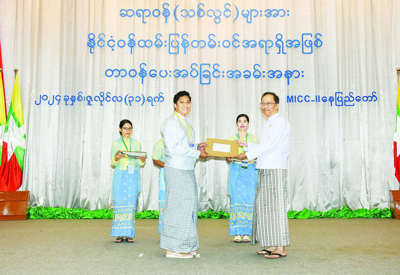 ကျန်းမာရေးဝန်ကြီးဌာန ဆရာဝန် (သစ်လွင်)များအား နိုင်ငံ့ဝန်ထမ်းပြန်တမ်းဝင် အရာရှိများအဖြစ် တာဝန်ပေးအပ်ခြင်းအခမ်းအနားကို ယနေ့တွင် နေပြည်တော်ရှိ MICC-II ၌ ကျင်းပသည်။