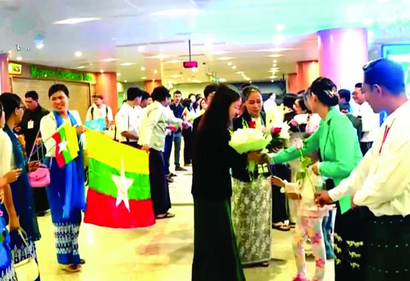 ကမ္ဘောဒီးယားနိုင်ငံတွင် ဇူလိုင် ၂၂ ရက်မှ ၂၆ ရက်အထိ ကျင်းပခဲ့ သည့် 10th ASEAN + 3 Junior Science Odyssey ပြိုင်ပွဲတွင် ရွှေတံဆိပ်နှစ်ခုနှင့် ငွေတံဆိပ်တစ်ခုရရှိခဲ့သော မြန်မာနိုင်ငံကိုယ်စားပြုလူငယ်အဖွဲ့သည် ဇူလိုင် ၂၇ ရက် ညနေပိုင်းက ရန်ကုန်မြို့သို့ ပြန်လည်ရောက်ရှိလာရာ သိပ္ပံနှင့်နည်းပညာဝန်ကြီးဌာနမှ တာဝန်ရှိသူများ၊ အစိုးရစက်မှုလက်မှုသိပ္ပံ အင်းစိန်မှ ကျောင်းအုပ်ဆရာကြီးနှင့် ကျောင်းသား ကျောင်းသူများ၊ ပညာရေးဝန်ကြီးဌာနမှ တာဝန်ရှိသူများက ကြိုဆိုခဲ့ကြသည်။