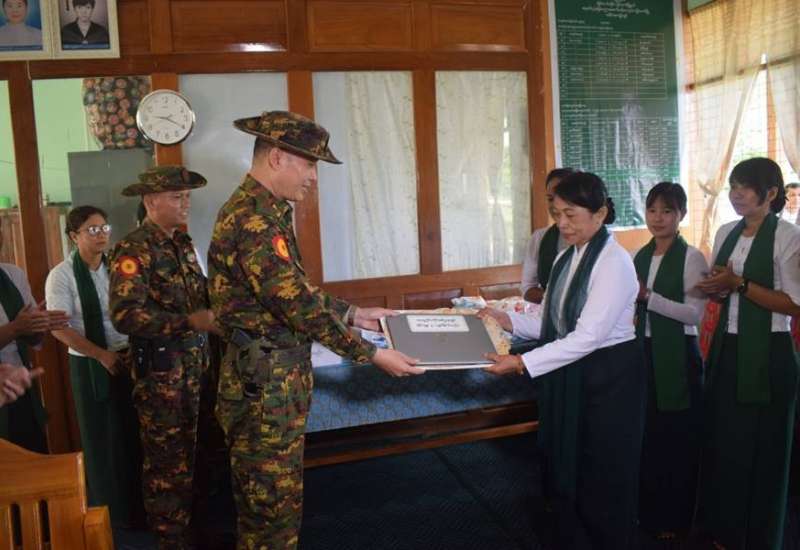 ကယားပြည်နယ်၊ လွိုင်ကော်မြို့၊ ဒေါနိုးကူးရပ်ကွက်ရှိ အမှတ် (၇) အခြေခံပညာအထက်တန်းကျောင်းအတွက် ရုံးသုံးအထောက်အကူပစ္စည်းများ ထောက်ပံ့ပေးအပ်ပွဲကို ယနေ့နံနက်ပိုင်းတွင် အဆိုပါကျောင်းရှိ ဒွေးမယ်နော်အဆောင်၌ ပြုလုပ်ရာ အရှေ့ပိုင်းတိုင်းစစ်ဌာနချုပ် တိုင်းမှူး ဗိုလ်ချုပ်ဇော်မင်းလတ်နှင့် အဖွဲ့ဝင်များ၊ ကျောင်းအုပ်ဆရာမကြီးနှင့် ဆရာ/ ဆရာမများ တက်ရောက်ကြသည်။