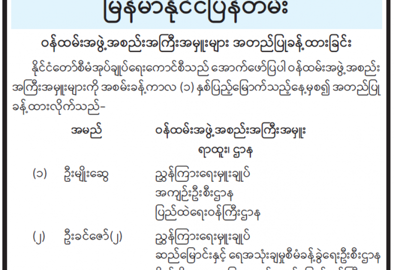 ၁။ နိုင်ငံတော်သံဃမဟာနာယကအဖွဲ့ ဆရာတော်ကြီးများ၏ ဩဝါဒနှင့်အညီ သာသနာရေးနှင့်ယဉ်ကျေးမှုဝန်ကြီးဌာနအနေဖြင့် ရန်ကုန်၊ မန္တလေးနှင့် စစ်ကိုင်းမြို့တို့ရှိ သာသနာ့တက္ကသိုလ်ကြီးများနှင့် နေပြည်တော်၊ တိုင်းဒေသကြီး/ ပြည်နယ်များရှိ ပရိယတ္တိစာသင်တိုက်ကြီးများမှ စာချစာသင်ရဟန်းတော်များ အသုံးပြုလျက်ရှိသည့် ပိဋကသုံးပုံ ပါဠိတော်အဖွင့် အဋ္ဌကထာကျမ်းစာအုပ် ၅၁ အုပ်တို့ကို ဆဋ္ဌမူအတိုင်း စာမျက်နှာ၊ စာသားနှင့် စာလုံးရေပြောင်းလဲမှုမရှိဘဲ စာလုံးအနေအထား သန့်ရှင်းသပ်ရပ်မှုရှိသည့် ကွန်ပျူတာစာမူစနစ်ဖြင့် ကျမ်းစာအုပ်တစ်မျိုးလျှင် အုပ်ရေ ၁,၀၀၀ စီ ပြန်လည်ပုံနှိပ်ထုတ်ဝေနိုင်ရေး ဆောင်ရွက်လျက်ရှိပါသည်။
