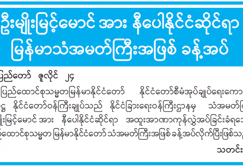 ပြည်ထောင်စုသမ္မတမြန်မာနိုင်ငံတော် နိုင်ငံတော်စီမံအုပ်ချုပ်ရေးကောင်စီဥက္ကဋ္ဌ နိုင်ငံတော်ဝန်ကြီးချုပ်သည် နိုင်ငံခြားရေးဝန်ကြီးဌာနမှ သံအမတ်ကြီး ဦးမျိုးမြင့်မောင်အား နီပေါနိုင်ငံဆိုင်ရာ အထူးအာဏာကုန်လွှဲအပ်ခြင်းခံရသော ပြည်ထောင်စုသမ္မတမြန်မာနိုင်ငံတော် သံအမတ်ကြီးအဖြစ် ခန့်အပ်လိုက်ပြီးဖြစ်သည်။
