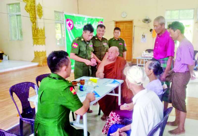ရန်ကုန်တိုင်းဒေသကြီး လှည်းကူးမြို့နယ် အဝိုင်းအနောက်ကျေးရွာနှင့် ပတ်ဝန်းကျင်ကျေးရွာများမှ သံဃာတော်များနှင့် ဒေသခံပြည်သူများအား ယနေ့နံနက်ပိုင်းတွင် ရန်ကုန်တိုင်းစစ်ဌာနချုပ် နယ်လှည့်ဆေးကုသရေးအဖွဲ့က အဆိုပါကျေးရွာရှိ ကောဝိဒါရာမကျောင်းတိုက်၌ ကျန်းမာရေးစောင့်ရှောက်မှုလုပ်ငန်းများ ဆောင်ရွက်ပေးသည်။