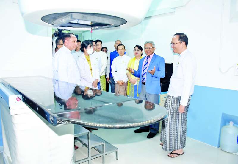 အိန္ဒိယသမ္မတနိုင်ငံက ရန်ကုန်ပြည်သူ့ဆေးရုံ ကြီးသို့လှူဒါန်းသည့် ကင်ဆာဓာတ်ရောင်ခြည်ကုသစက် (Bhabhatron-II and Imagin) လွှဲပြောင်း လက်ခံခြင်းအခမ်းအနားကို ရန်ကုန်ပြည်သူ့ဆေးရုံကြီး ခုနစ်ထပ်ဆေးကုသဆောင်သစ် အစည်းအဝေးခန်းမ၌ကျင်းပရာ ကျန်းမာရေးဝန်ကြီးဌာန ပြည်ထောင်စုဝန်ကြီးဒေါက်တာသက်ခိုင်ဝင်း၊ ရန်ကုန်တိုင်းဒေသကြီးဝန်ကြီးချုပ် ဦးစိုးသိန်းနှင့် အိန္ဒိယသမ္မတနိုင်ငံသံအမတ်ကြီး Mr. Shri Abhay Thakur နှင့် တာဝန်ရှိသူများ တက်ရောက်ကြသည်။