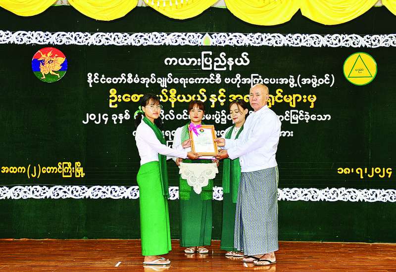 ဒေသအခက်အခဲကြောင့် ရှမ်းပြည်နယ်(တောင်ပိုင်း) တောင်ကြီးမြို့တွင် ရောက်ရှိနေသော ကယားပြည်နယ်မှ ၂၀၂၄ ခုနှစ် တက္ကသိုလ်ဝင် စာမေးပွဲအောင် ဂုဏ်ထူးရကျောင်းသားကျောင်းသူများအား ဂုဏ်ပြုဆုချီးမြှင့်ပွဲအခမ်းအနားကို ယနေ့နံနက် ၉ နာရီက ကျောင်းကြီးစုရပ်ကွက် အမှတ် (၂) အခြေခံပညာအထက်တန်းကျောင်း ပညာအလင်္ကာခန်းမ၌ ကျင်းပသည်။