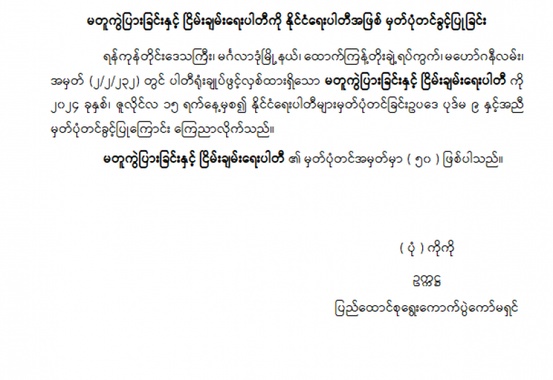 မတူကွဲပြားခြင်းနှင့် ငြိမ်းချမ်းရေးပါတီကို နိုင်ငံရေးပါတီအဖြစ် မှတ်ပုံတင်ခွင့်ပြုခြင်း