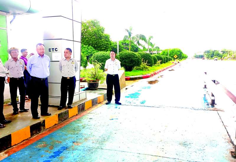 ဆောက်လုပ်ရေးဝန်ကြီးဌာန ဒုတိယဝန်ကြီး ဦးဝင်းဖေသည် တာဝန်ရှိသူများနှင့်အတူ ယမန်နေ့ မွန်းလွဲပိုင်းက ရန်ကုန်-မန္တလေး အမြန်လမ်းမကြီး (နေပြည်တော်-ရန်ကုန်လမ်းပိုင်း) ပေါ်ရှိ လမ်းအသုံးပြုခကောက်ခံလျက်ရှိသည့် တိုးဂိတ်များကို ကြည့်ရှုစစ်ဆေးသည်။