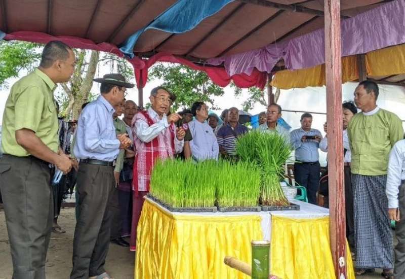 ၂၀၂၄-၂၀၂၅ ခုနှစ် နိုင်ငံ့စီးပွားမြှင့်တင်ရေးရန်ပုံငွေဖြင့်ဆောင်ရွက်သော မိုးစပါးစိုက်တောင်သူများအား သွင်းအားစုပေးအပ်ပွဲအခမ်းအနားကို ယနေ့နံနက်ပိုင်းတွင် ဧရာဝတီတိုင်းဒေသကြီး ဝါးခယ်မမြို့နယ် အူကျွန်းကျေးရွာရှိ တောင်သူဦးကျော်ရွှေ၏မိုးစပါး (ဆင်းသုခ) စိုက်ခင်း၌ကျင်းပသည်။