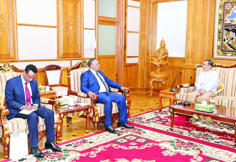 ပြန်ကြားရေးဝန်ကြီးဌာန ပြည်ထောင်စုဝန်ကြီး ဦးမောင်မောင်အုန်းအား မြန်မာနိုင်ငံဆိုင်ရာ အီသီယိုပီးယားဖက်ဒရယ်ဒီမိုကရက်တစ်သမ္မတနိုင်ငံ သံအမတ်ကြီး H.E.Mr. Daba Debele Hunde သည် ယနေ့ညနေပိုင်းတွင် နေပြည်တော်ရှိ ပြန်ကြားရေးဝန်ကြီးဌာန ဧည့်ခန်းမ၌ လာရောက်တွေ့ဆုံသည်။