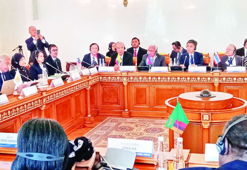 နိုင်ငံတော်ဖွဲ့စည်းပုံအခြေခံဥပဒေဆိုင်ရာခုံရုံးဥက္ကဋ္ဌ ဦးအောင်ဇော်သိန်း ဦးဆောင်သော ကိုယ်စားလှယ်အဖွဲ့သည် ရုရှားဖက်ဒရေးရှင်းနိုင်ငံ ဖွဲ့စည်းပုံအခြေခံဥပဒေဆိုင်ရာတရားရုံးဥက္ကဋ္ဌ H.E. Mr. Valery D.Zorkin ၏ ဖိတ်ကြားချက်အရ ရုရှားဖက်ဒရေးရှင်းနိုင်ငံ စိန့်ပီတာစဘတ်မြို့၌ “Protection of Rights and Constitutional Supervision” ခေါင်းစဉ်ဖြင့် ဇွန် ၂၆ ရက်မှ ၂၈ ရက်အထိ ကျင်းပသည့် နိုင်ငံတကာညီလာခံ (International Conference) နှင့် (၁၂) ကြိမ်မြောက် နိုင်ငံတကာဥပဒေရေးရာ ဖိုရမ် (XII St. Petersburg International Legal Forum)သို့ တက်ရောက်ခဲ့ပြီး ယမန်နေ့ညပိုင်းတွင် လေကြောင်းခရီးဖြင့် ရန်ကုန်မြို့သို့ ပြန်လည်ရောက်ရှိခဲ့သည်။