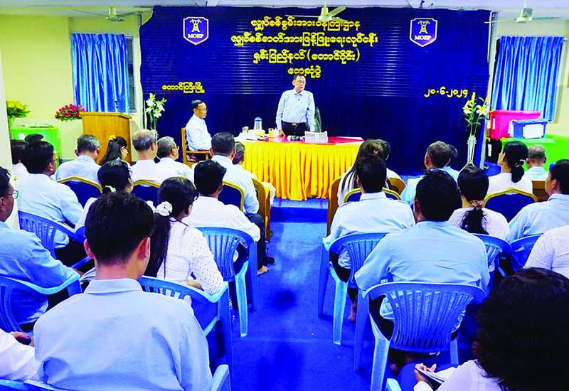 တိုင်းရင်းသားလူမျိုးများရေးရာဝန်ကြီးဌာန ပြည်ထောင်စုဝန်ကြီး Jeng Phang နော်တောင်သည် ဧရာဝတီတိုင်းဒေသကြီး တိုင်းရင်းသားရေးရာဝန်ကြီး ဦးစောလင်းခယ်၊ တာဝန်ရှိသူများနှင့်အတူ ဇွန် ၂၉ ရက် မွန်းလွဲပိုင်းတွင် ဧရာဝတီတိုင်းဒေသကြီး မအူပင်မြို့နယ် ခရိုင်အထွေထွေအုပ်ချုပ်ရေးဦးစီးဌာန အစည်းအဝေးခန်းမ၌ ဖျာပုံခရိုင်နှင့်မအူပင်ခရိုင်တို့အတွင်းရှိ တိုင်းရင်းသားစာပေနှင့် ယဉ်ကျေးမှုအသင်းအဖွဲ့များနှင့် တွေ့ဆုံဆွေးနွေးသည်။
