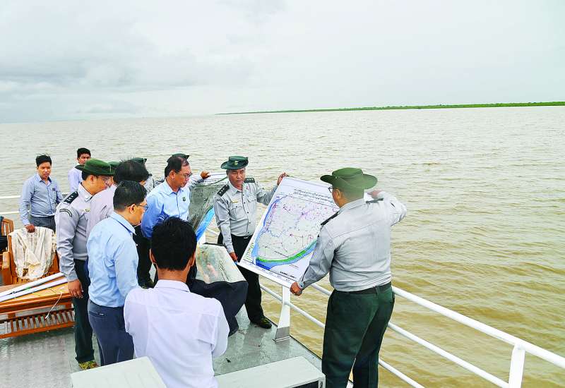 သယံဇာတနှင့် သဘာဝပတ်ဝန်းကျင် ထိန်းသိမ်းရေးဝန်ကြီးဌာန ပြည်ထောင်စုဝန်ကြီးဦးခင်မောင်ရီသည် တာဝန်ရှိသူများနှင့်အတူ ယနေ့နံနက်ပိုင်းတွင် ရန်ကုန်တိုင်းဒေသကြီး ကျောက်တန်းမြို့နယ်အတွင်း တိုးချဲ့ဖွဲ့စည်းထားသော ရွှေပြည်အေးချမ်းဘို့ ဒီရေတောကြိုးပြင်ကာကွယ်တောကို သွားရောက်ကြည့်ရှုစစ်ဆေးသည်။