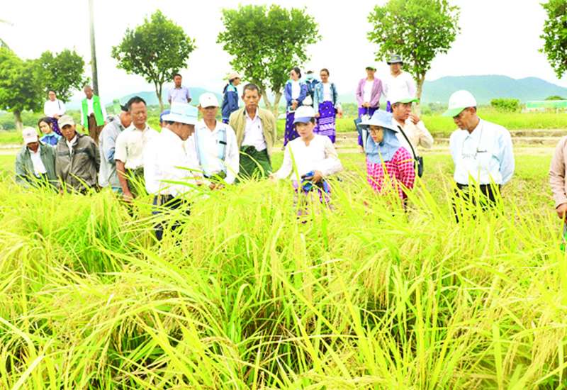 စိုက်ပျိုးရေး၊ မွေးမြူရေးနှင့်ဆည်မြောင်းဝန်ကြီးဌာန ဒုတိယဝန်ကြီး ဒေါက်တာတင်ထွဋ်သည် ယမန်နေ့နံနက်ပိုင်းက နေပြည်တော်ရေဆင်းစိုက်ပျိုးရေး သုတေသနဦးစီးဌာန စပါးသုတေသနဌာနစုတွင် ဆောင်ရွက်ထားရှိသော အထွက်ကောင်းစပါးမျိုး ၂ မျိုး၊ ၃မျိုးနှင့် ၄ မျိုးအထိ မျိုးစပ်မွေးမြူထားသည့် သားဆက်လိုင်းများကို လာရောက်အကဲဖြတ် လေ့လာကြသည့် ဒက္ခိဏသီရိမြို့နယ်မှ တောင်သူများကို စပါးမျိုးစပ်ခြင်းနှင့် စပါးမျိုးသားဆက်လိုင်းရွေးချယ်ခြင်း နည်းပညာရပ်ဆိုင်ရာသုတနည်းပညာများကို ရှင်းလင်းပြောကြားသည်။