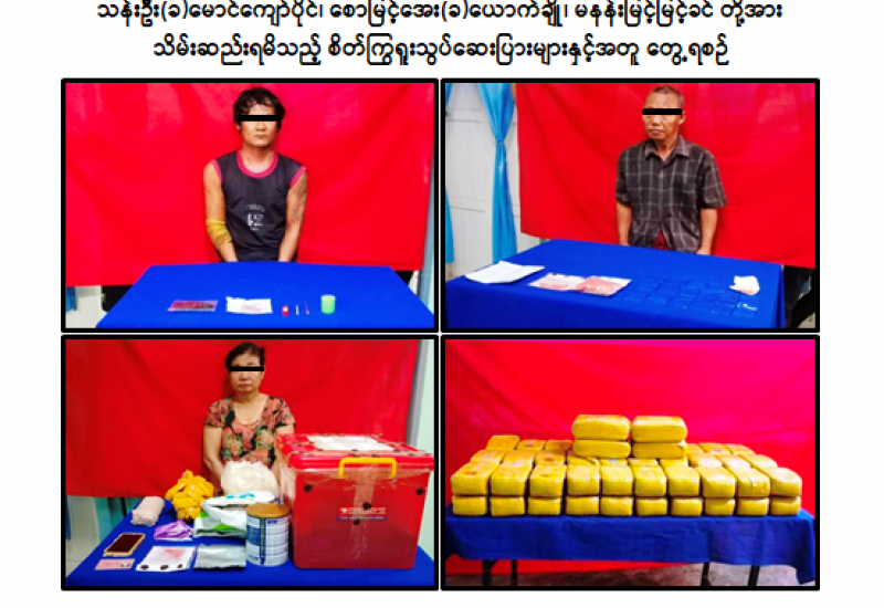 ဇွန်လ ၂၆ ရက်နေ့ ၁၂:၃၀ အချိန် ကရင်ပြည်နယ်ရဲတပ်ဖွဲ့မှ တပ်ဖွဲ့ဝင်များပါဝင်သော ပူးပေါင်းအဖွဲ့သည် ဘားအံမြို့နယ်၊ လှာကာကျေးရွာအုပ်စု၊ လှာကာကျေးရွာရှိ သန်းဦး(ခ)မောင်ကျော်ပိုင်၏နေအိမ်ကို ဝင်ရောက်ရှာဖွေရာ နေအိမ်အတွင်းမှ စိတ်ကြွရူးသွပ်ဆေးပြား ၅၅ ပြား သိမ်းဆည်းရမိခဲ့ပြီး ကွင်းဆက်အရ ၁၃:၃၀ အချိန် တစ်ရွာတည်းနေသူများဖြစ်သည့် စောမြင့်အေး(ခ)ယောက်ချို၏ နေအိမ်ကို ဝင်ရောက်ရှာဖွေရာ စိတ်ကြွရူးသွပ်ဆေးပြား ၃,၁၉၄ ပြားအားလည်းကောင်း၊ ၁၄:၃၀ အချိန် မနန်းမြင့်မြင့်ခင်၏ နေအိမ်ကို ဝင်ရောက်ရှာဖွေရာ စိတ်ကြွရူးသွပ်ဆေးပြား ၁၀၀,၀၀၀ ပြားအား လည်းကောင်း၊ ၁၈:၀၀ အချိန် ဘားအံမြို့နယ်၊ ကော့ထမ္မလိန်းကျေးရွာအုပ်စု၊ ကော့ထမ္မလိန်းကျေးရွာရှိ မနန်းဝင်းခင်၏ နေအိမ်ကို ဝင်ရောက်ရှာဖွေရာ ၎င်းအားမတွေ့ရှိဘဲ နေအိမ်အတွင်းမှ စိတ်ကြွရူးသွပ်ဆေးပြား ၆၈၀၀၀၀ ပြားအားလည်းကောင်း အသီးသီးသိမ်းဆည်းရမိခဲ့သဖြင့် သန်းဦး(ခ)မောင်ကျော်ပိုင် (၄၅)နှစ်၊ စောမြင့်အေး(ခ)ယောက်ချို(၅၂)နှစ်၊ မနန်းမြင့်မြင့်ခင်(၅၄)နှစ်နှင့် မနန်းဝင်းခင်(ဖမ်းမမိ)တို့အား မူးယစ်ဆေးဝါးနှင့် စိတ်ကိုပြောင်းလဲစေသော ဆေးဝါးများဆိုင်ရာဥပဒေအရ အရေးယူထားကြောင်း သတင်းရရှိသည်။