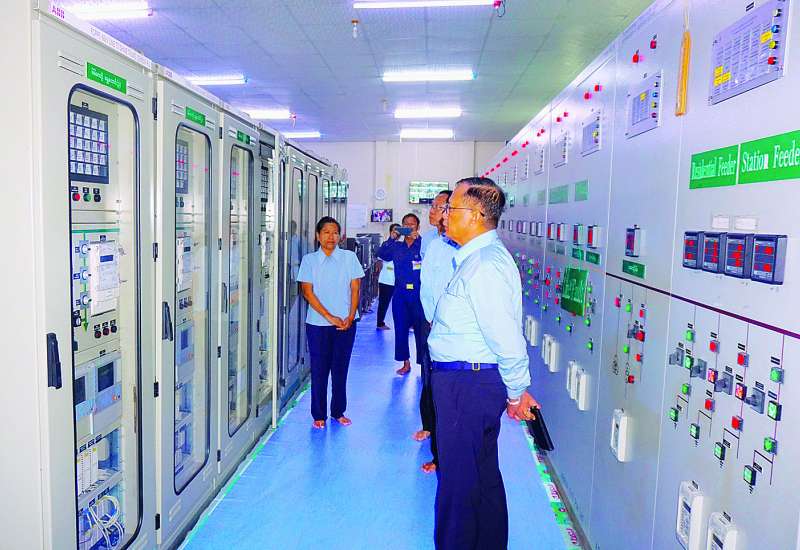 လျှပ်စစ်စွမ်းအားဝန်ကြီးဌာန ဒုတိယဝန်ကြီး ဦးအေးကျော်သည် ဌာနဆိုင်ရာတာဝန်ရှိသူများနှင့်အတူ ဇွန် ၂၆ ရက်ညနေပိုင်းတွင် မန္တလေးတိုင်းဒေသကြီး သာစည်ခရိုင်ရှိ ၁၃၂ ကေဗွီ ရေပေါင်းဆုံ ပင်မဓာတ်အားခွဲရုံသို့ ရောက်ရှိရာဓာတ်အားခွဲရုံမှူးက ဓာတ်အားထိန်းချုပ်ခန်းအတွင်းမှ ဓာတ်အားစနစ်ဖြင့်ချိတ်ဆက်၍ ဓာတ်အားပို့လွှတ်ပေးနေမှုအခြေအနေကို ရှင်းလင်းတင်ပြရာ ဒုတိယဝန်ကြီးက ဓာတ်အားခွဲရုံကြံ့ခိုင်ရေးနှင့် ရေရှည်တည်တံ့ခိုင်မြဲရေးအတွက် ပုံမှန်ထိန်းသိမ်းစစ်ဆေးဆောင်ရွက်သွားရန်၊ ဓာတ်အားခွဲရုံဝင်းရှိ ဓာတ်အားလိုင်းနှင့် လွတ်ကင်းသည့်မြေလွတ်များတွင် သီးပင်စားပင်နှင့် နှစ်ရှည်ပင်များစိုက်ပျိုး ထားရှိရန်မှာကြားပြီး ဓာတ်အားထိန်းချုပ်ခန်းနှင့် ဆွိယာဒ် (Switch Yard) အတွင်းရှိ ဓာတ်အား ထိန်းချုပ်ပစ္စည်းများနှင့် ဓာတ်အားလွှတ်ပစ္စည်းများ၏ အခြေအနေကို လိုက်လံကြည့်ရှု စစ်ဆေးသည်။