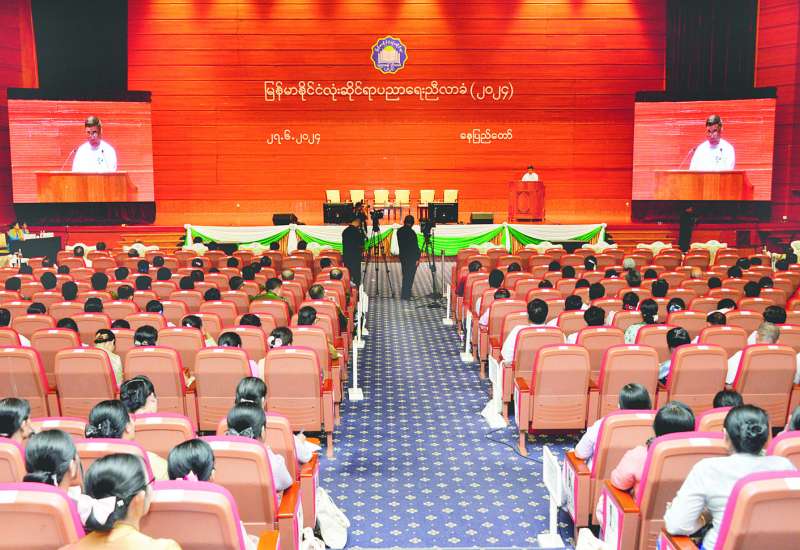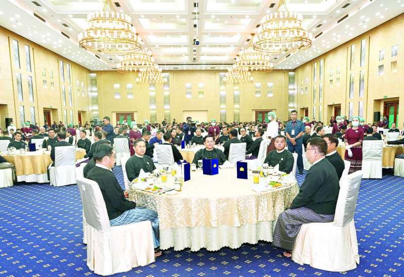မြန်မာနိုင်ငံလုံးဆိုင်ရာပညာရေးညီလာခံ(၂၀၂၄) ဂုဏ်ပြုညစာစားပွဲအခမ်းအနားကို ယနေ့ညပိုင်းတွင် နေပြည်တော်ရှိ မြန်မာအပြည်ပြည်ဆိုင်ရာကွန်ဗင်းရှင်းဗဟိုဌာန-၂ ၌ ကျင်းပပြုလုပ်ရာ နိုင်ငံတော်စီမံအုပ်ချုပ်ရေးကောင်စီဥက္ကဋ္ဌ နိုင်ငံတော်ဝန်ကြီးချုပ် ဗိုလ်ချုပ်မှူးကြီး မင်းအောင်လှိုင် တက်ရောက်ချီးမြှင့်သည်။