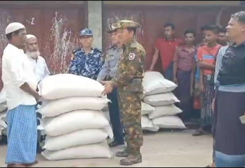 ရခိုင်ပြည်နယ်၊ မောင်တောမြို့ရှိ ရပ်ကွက်များတွင် နေထိုင်လျက်ရှိသော ဒေသခံပြည်သူများ အိမ်ထောင်စုဝင်များ စားရေးအထောက်အကူဖြစ်စေရန်အတွက် အနောက်ပိုင်းတိုင်းစစ်ဌာနချုပ်မှ တာဝန်ရှိသူများနှင့် ဌာနဆိုင်ရာတာဝန်ရှိသူများက ဇွန် ၂၂ ရက်တွင် မောင်တောမြို့ရှိ ရပ်ကွက်နေ ဒေသခံပြည်သူများထံ ဆန်အိတ်များကို လက်ဝယ်အရောက် ထောက်ပံ့ပို့ဆောင်ပေးခဲ့သည်။