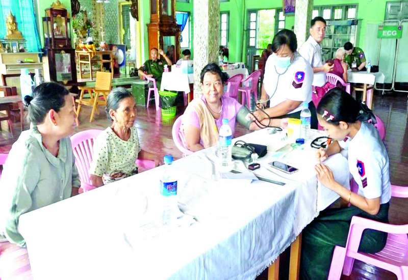 ရန်ကုန်တိုင်းဒေသကြီး မှော်ဘီမြို့နယ် ချောင်းဝကျေးရွာအုပ်စု လက်ပံဝဲကျေးရွာနှင့် ပတ်ဝန်းကျင်ကျေးရွာများမှ သံဃာတော်များနှင့် ဒေသခံပြည်သူများအား ယနေ့နံနက်ပိုင်းတွင် ရန်ကုန်တိုင်းစစ်ဌာနချုပ် နယ်မြေခံဆေးကုသရေးအဖွဲ့က အဆိုပါကျေးရွာရှိ လက်ပံဝဲကျောင်းတိုက်၌ ကျန်းမာရေးစောင့်ရှောက်မှု လုပ်ငန်းများ ဆောင်ရွက်ပေးသည်။