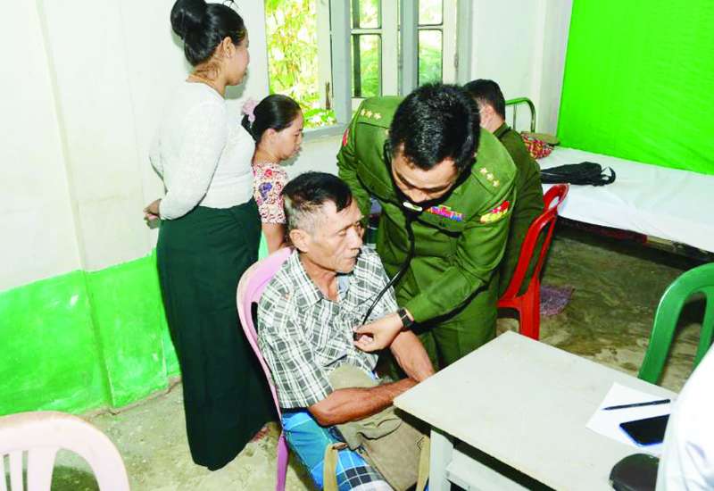 ဧရာဝတီမြစ်ကြောင်းတစ်လျှောက်ရှိ ဒေသခံပြည်သူများအား ကျန်းမာရေးစောင့်ရှောက်မှုလုပ်ငန်းများ ဆောင်ရွက်ပေးရန်အတွက် တပ်မတော်မြစ်တွင်းသွားဆေးရုံ ရေယာဉ်(ရွှေပုဇွန်)၊ မြစ်ရေယာဉ် (စကု)တို့နှင့်အတူ လိုက်ပါလာသည့် တပ်မတော်မှ ပါရဂူများ၊ ဆေးမှူးများ၊ သူနာပြုများပါဝင်သော တပ်မတော်နယ်လှည့် အထူးကုဆေးအဖွဲ့သည် ယနေ့နံနက်ပိုင်းတွင် မော်လမြိုင်ကျွန်းမြို့နယ် ရွာသစ်ကျေးရွာရှိ သီရိမင်္ဂလာ မိုးကုတ်ဓမ္မရိပ်သာကျောင်းတိုက်၌ အခြေပြု၍ အဆိုပါကျေးရွာနှင့် ပတ်ဝန်းကျင်ကျေးရွာများမှ ဒေသခံပြည်သူ ၅၈၃ ဦးအား ကျန်းမာရေးစောင့်ရှောက်မှုလုပ်ငန်းများ ဆောင်ရွက်ပေးသည်။
