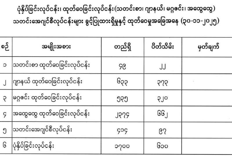 စားသုံးသူပြည်သူများ စားသုံးဆီဝယ်ယူစားသုံးရာတွင် ဘေးအန္တရာယ်ကင်းရှင်းသော စားသုံးဆီများကို သင့်တင့်သောဈေးနှုန်းဖြင့် ဝယ်ယူစားသုံးနိုင်စေရန်နှင့် ပြည်တွင်းလိုအပ်ချက်များကို ဖြည့်ဆည်းပေးနိုင်ရန် စီးပွားရေးနှင့် ကူးသန်းရောင်းဝယ်ရေးဝန်ကြီးဌာန စားသုံးဆီတင်သွင်းသိုလှောင်ဖြန့်ဖြူးခြင်းလုပ်ငန်းကြီးကြပ်ရေး ကော်မတီက ဆောင်ရွက်ပေးလျက်ရှိကြောင်း သိရသည်။