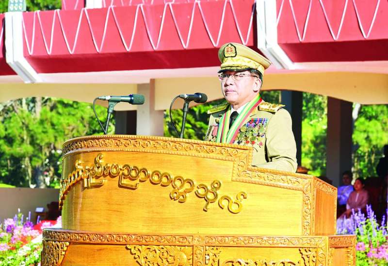 တပ်မတော်နည်းပညာတက္ကသိုလ် ဗိုလ်လောင်းသင်တန်းအမှတ်စဉ် (၂၇) သင်တန်းဆင်းဂုဏ်ပြုစစ်ရေးပြအခမ်းအနားကို ယနေ့နံနက်ပိုင်းတွင် ပြင်ဦးလွင်မြို့၊ တပ်မတော်နည်းပညာတက္ကသိုလ် စစ်ရေးပြကွင်း၌ ကျင်းပပြုလုပ်ရာ နိုင်ငံတော်လုံခြုံရေးနှင့် အေးချမ်းသာယာရေးကော်မရှင်ဥက္ကဋ္ဌ တပ်မတော်ကာကွယ်ရေးဦးစီးချုပ် ဗိုလ်ချုပ်မှူးကြီး သတိုးမဟာသရေစည်သူ သတိုးသီရိသုဓမ္မ မင်းအောင်လှိုင် တက်ရောက်မိန့်ခွန်းပြောကြားသည်။