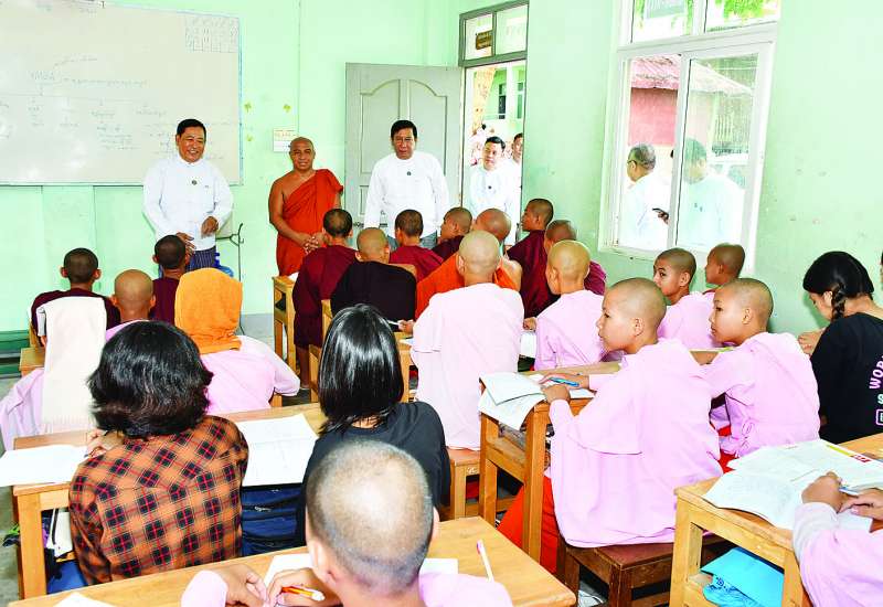 သာသနာရေးနှင့်ယဉ်ကျေးမှုဝန်ကြီးဌာန ဒုတိယဝန်ကြီး ဦးအေးထွန်းသည် တာဝန်ရှိသူများနှင့်အတူ ယနေ့နံနက်ပိုင်းတွင် မန္တလေးတိုင်းဒေသကြီး ပြင်ဦးလွင်မြို့နယ်ရှိ ခန္တီးဘုန်းတော်ကြီးသင်ပညာရေးကျောင်း ကျောင်းအုပ်ဆရာတော် ဘဒ္ဒန္တပညိန္ဒ၊ အေးမြချမ်းသာ သီလရှင်သင်ပညာရေးကျောင်း ကျောင်းအုပ်ဆရာကြီး ဒေါ်ပါရမီနှင့် ရွှေစင်မင်း သီလရှင်သင်ပညာရေးကျောင်း ကျောင်းအုပ်ဆရာကြီး ဒေါက်တာဒေါ်နန္ဒသိင်္ဂီတို့အား သွားရောက်ဖူးမြော်ကြည်ညိုပြီး နဝကမ္မအလှူတော်ငွေများ ဆက်ကပ်လှူဒါန်းကာ ဆရာ ဆရာမများနှင့် ရင်းရင်းနှီးနှီးတွေ့ဆုံနှုတ်ဆက်၍ ကျောင်းသားကျောင်းသူများ စာသင်ကြားနေမှုအခြေအနေကို ကြည့်ရှုအားပေးသည်။