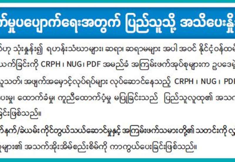 အကြမ်းဖက်မှုပပျောက်ရေးအတွက် ပြည်သူသို့ အသိပေးနှိုးဆော်ချက်