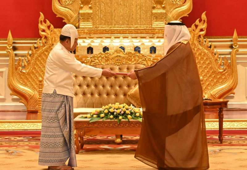 နိုင်ငံတော်စီမံအုပ်ချုပ်ရေးကောင်စီဥက္ကဋ္ဌ နိုင်ငံတော်ဝန်ကြီးချုပ် ဗိုလ်ချုပ်မှူးကြီး မင်းအောင်လှိုင်ထံ မြန်မာနိုင်ငံဆိုင်ရာ အာရပ်စော်ဘွားများပြည်ထောင်စုနိုင်ငံ (UAE) သံအမတ်ကြီးအဖြစ် ခန့်အပ်ရန် သဘောတူညီပြီးဖြစ်သော သံအမတ်ကြီး H.E. Mr. Mutaz Abdullah Abdulijaleel Mohamed Al Faheem သည် ယနေ့နံနက် ၁၀ နာရီတွင် နေပြည်တော်ရှိ နိုင်ငံတော်စီမံအုပ်ချုပ်ရေးကောင်စီဥက္ကဋ္ဌရုံး၊ သံတမန်ဆောင်ဧည့်ခန်းမ၌ ၎င်း၏သံအမတ်ခန့်အပ်လွှာကို ပေးအပ်သည်။