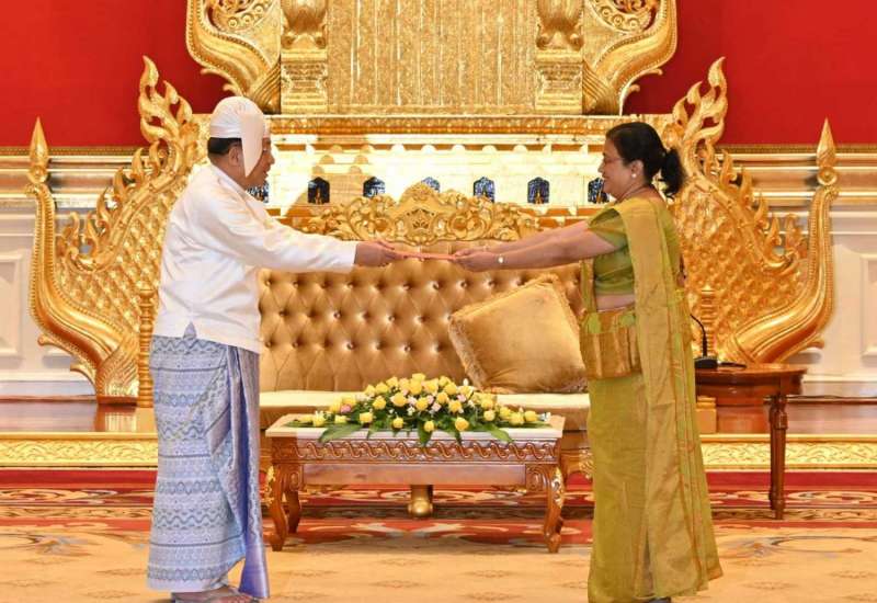 နိုင်ငံတော်စီမံအုပ်ချုပ်ရေးကောင်စီဥက္ကဋ္ဌ နိုင်ငံတော်ဝန်ကြီးချုပ် ဗိုလ်ချုပ်မှူးကြီး မင်းအောင်လှိုင်ထံ မြန်မာနိုင်ငံဆိုင်ရာ သီရိလင်္ကာနိုင်ငံ သံအမတ်ကြီးအဖြစ် ခန့်အပ်ရန် သဘောတူညီပြီးဖြစ်သော သံအမတ်ကြီး H.E. Mrs. Ponnamperuma Arachige Prabashini Ponnamperuma သည် ယနေ့နံနက် ၁၀ နာရီ ၄၅ မိနစ်တွင် နေပြည်တော်ရှိ နိုင်ငံတော်စီမံအုပ်ချုပ်ရေးကောင်စီဥက္ကဋ္ဌရုံး၊ သံတမန်ဆောင်ဧည့်ခန်းမ၌ ၎င်း၏သံအမတ်ခန့်အပ်လွှာကို ပေးအပ်သည်။