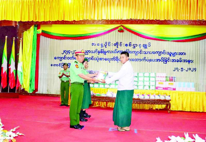 ၂၀၂၄-၂၀၂၅ ပညာသင်နှစ်တွင် တက်ရောက်ပညာသင်ကြားမည့် ကျောင်းသား ကျောင်းသူများအား ကျောင်းဝတ်စုံနှင့် စာရေးကိရိယာများပေးအပ်ခြင်းကို ယနေ့နံနက်ပိုင်းတွင် အရှေ့ပိုင်းတိုင်းစစ်ဌာနချုပ် သံလွင်ခန်းမ၌ပြုလုပ်ရာ ဒုတိယတိုင်းမှူး ဗိုလ်မှူးချုပ် အောင်ကျော်ဆန်းနှင့် အရာရှိ၊ စစ်သည်၊ မိသားစုဝင်များနှင့် ကျောင်းသား ကျောင်းသူများ တက်ရောက်ကြသည်။