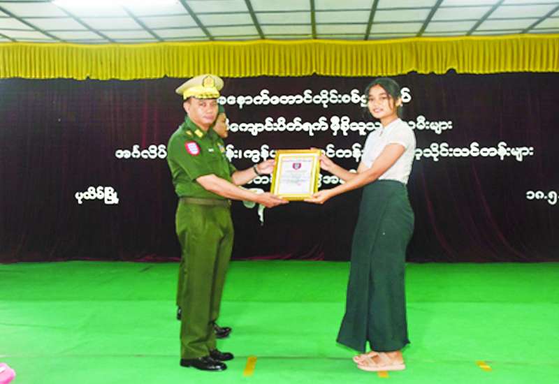 ဧရာဝတီတိုင်းဒေသကြီး ပုသိမ်မြို့ရှိ အမှတ် (၇) အခြေခံပညာအထက်တန်းကျောင်း၌ ဖွင့်လှစ်သင်ကြားလျက်ရှိသည့် နွေရာသီ အင်္ဂလိပ်စာသင်တန်း၊ ကွန်ပျူတာသင်တန်းနှင့် မြန်မာ့သိုင်းသင်တန်းဆင်းပွဲကို ယနေ့နံနက်ပိုင်းက အဆိုပါကျောင်းခန်းမ၌ ပြုလုပ်ရာ အနောက်တောင်တိုင်းစစ်ဌာနချုပ် တိုင်းမှူး ဗိုလ်ချုပ်ဝေလင်းနှင့် တာဝန်ရှိသူများ၊ သင်တန်းနည်းပြများ၊ ဆရာ ဆရာမများနှင့် သင်တန်းသား သင်တန်းသူများ တက်ရောက်ကြသည်။