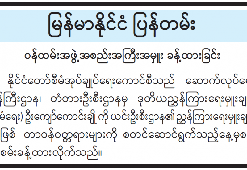 တရားမဝင်ကုန်သွယ်မှုတိုက်ဖျက်ရေးဦးဆောင်ကော်မတီ၏ ကြီးကြပ်ကွပ်ကဲမှုဖြင့် တရားမဝင်ကုန်သွယ်မှုများကို ဥပဒေနှင့်အညီ ထိရောက်စွာ တားဆီးအရေးယူနိုင်ရေး ဆောင်ရွက်လျက်ရှိရာ မေ ၁၀ ရက်တွင် အကောက်ခွန်ဦးစီးဌာန၏ စီမံခန့်ခွဲမှုဖြင့် တာဝန်ကျပူးပေါင်းအဖွဲ့များက စစ်ဆေးမှုများ ဆောင်ရွက်ခဲ့ရာ မြန်မာ့စက်မှုဆိပ်ကမ်း၌ ကုန်သေတ္တာတစ်လုံးအတွင်းမှ သွင်းကုန်ကြေညာလွှာတွင် ကြေညာထားခြင်းမရှိသည့် တရုတ်နိုင်ငံထုတ် လျှပ်စစ်လုပ်ငန်းသုံးပစ္စည်း Earthing Lug ကီလိုဂရမ် ၁၈၀ အပါအဝင် ကုန်ပစ္စည်း ၁၄ မျိုး (ခန့်မှန်း တန်ဖိုးငွေကျပ် ၁၁၆၉၅၀၀၅၀) ကိုလည်းကောင်း၊ အေးရှားဝေါလ်ကုန်သေတ္တာစစ်ဆေးရေးစခန်း၌ ကုန်သေတ္တာနှစ်လုံးအတွင်းမှ သွင်းကုန်ကြေညာလွှာတွင် ကြေညာထားခြင်းမရှိသည့် Super King အင်ဂျင်ဝိုင် ၁၅၄၈ ကီလိုဂရမ်၊ ဆောက်လုပ်ရေးလုပ်ငန်းသုံးပစ္စည်း Bolt & Nut ကီလိုဂရမ် ၂၇၁၅၀ အပါအဝင် ကုန်ပစ္စည်း သုံးမျိုး (ခန့်မှန်းတန်ဖိုးငွေကျပ် ၈၅၆၄၇၂၄၀) ကိုလည်းကောင်း၊ ရန်ကုန်အပြည်ပြည်ဆိုင်ရာလေဆိပ်၌ ခရီးသည်တစ်ဦး၏ ဝန်စည်အတွင်းမှ တရားဝင်စာရွက်စာတမ်းအထောက်အထား တင်ပြနိုင်ခြင်းမရှိသည့် နယ်သာလန်နိုင်ငံထုတ် Starlink Standard Kit Wifi Router လေးစုံ (ခန့်မှန်းတန်ဖိုး ငွေကျပ် ၇၅၀၀၀၀၀) ကိုလည်းကောင်း၊ စုစုပေါင်းခန့်မှန်းတန်ဖိုးငွေကျပ် ၂၁၀၀၉၇၂၉၀ ကို သိမ်းဆည်းရမိခဲ့ပြီး အကောက်ခွန်လုပ်ထုံးလုပ်နည်းများနှင့်အညီ အရေးယူဆောင်ရွက်လျက်ရှိသည်။