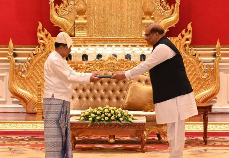 နိုင်ငံတော်စီမံအုပ်ချုပ်ရေးကောင်စီဥက္ကဋ္ဌ နိုင်ငံတော်ဝန်ကြီးချုပ် ဗိုလ်ချုပ်မှူးကြီး မင်းအောင်လှိုင်ထံ မြန်မာနိုင်ငံဆိုင်ရာ ပါကစ္စတန်နိုင်ငံသံအမတ်ကြီးအဖြစ် ခန့်အပ်ရန် သဘောတူညီပြီးဖြစ်သော သံအမတ်ကြီး H.E. Mr. Imran Haider သည် ယနေ့နံနက် ၁၀ နာရီတွင် နေပြည်တော်ရှိ နိုင်ငံတော်စီမံအုပ်ချုပ်ရေးကောင်စီဥက္ကဋ္ဌရုံး၊ သံတမန်ဆောင်ဧည့်ခန်းမ၌ ၎င်း၏သံအမတ်ခန့်အပ်လွှာကို ပေးအပ်သည်။