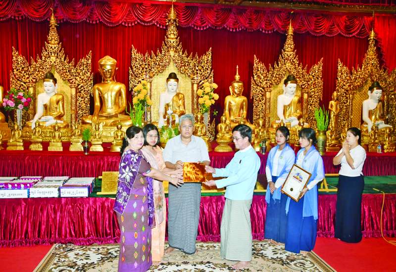 ရွှေတိဂုံစေတီတော်မြတ်ကြီးသို့ စေတနာသဒ္ဓါတရားထက်သန်စွာ လှူဒါန်းထားကြသော ငွေကျပ်တစ်သိန်းနှင့်အထက် အလှူရှင်များအား ဘဏ္ဍာတော်ထိန်းဂေါပကအဖွဲ့က (၅၈၆) ကြိမ်မြောက် ထုတိအနုမောဒနာ ချီးကျူးဂုဏ်ပြုမှတ်တမ်းလွှာပေးအပ်ပွဲနှင့် လှူဒါန်းမှုအစုစုတို့အတွက် ရေစက်ချအလှူတော် မင်္ဂလာအခမ်းအနားကို ယနေ့မွန်းလွဲ ၁ နာရီတွင် ရွှေတိဂုံစေတီတော်ရင်ပြင်တောင်ဘက်မုခ်ရှိ ရှေးဟောင်းဗုဒ္ဓရုပ်ပွားတော်များတန်ဆောင်း၌ ကျင်းပသည်။