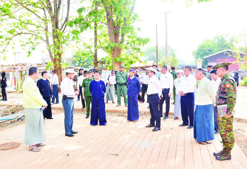 နိုင်ငံတော်စီမံအုပ်ချုပ်ရေးကောင်စီအဖွဲ့ဝင် ခွန်စံလွင်သည် ရှမ်းပြည်နယ်ဝန်ကြီးချုပ်ဦးအောင်အောင်၊ ပြည်နယ်ဝန်ကြီးများ၊ ပအိုဝ်းကိုယ်ပိုင်အုပ်ချုပ်ခွင့်ရဒေသ စီမံအုပ်ချုပ်ရေးအဖွဲ့ဥက္ကဋ္ဌနှင့် အဖွဲ့ဝင်များနှင့်အတူ ယနေ့နံနက်ပိုင်းတွင် ပအိုဝ်းကိုယ်ပိုင်အုပ်ချုပ်ခွင့်ဒေသ ဆီဆိုင်မြို့ ပြန်လည်ထူထောင်ရေးအတွက် ကွင်းဆင်းကြည့်ရှုစစ်ဆေးသည်။