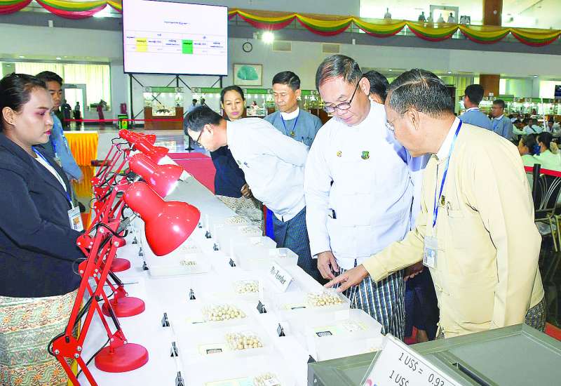 (၅၉) ကြိမ်မြောက် မြန်မာ့ကျောက်မျက်ရတနာပြပွဲ တတိယနေ့ကို ယနေ့နံနက်ပိုင်းက နေပြည်တော်ရှိ မဏိရတနာကျောက်စိမ်းခန်းမ၌ ဆက်လက်ကျင်းပရာ ပြည်တွင်း၊ ပြည်ပ ရတနာကုန်သည်များဖြင့် စည်ကားလျက်ရှိသည်။
