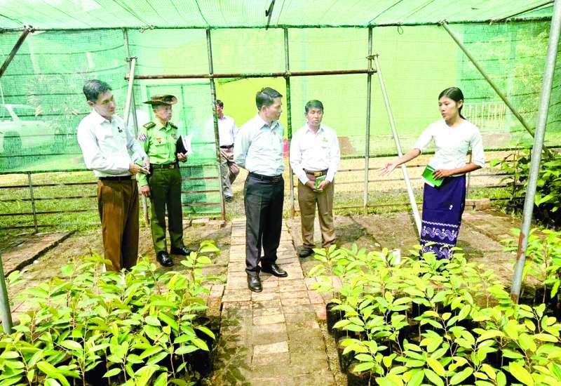 စိုက်ပျိုးရေး၊ မွေးမြူရေးနှင့်ဆည်မြောင်းဝန်ကြီးဌာန ပြည်ထောင်စုဝန်ကြီးဦးမင်းနောင်သည် ယမန်နေ့နံနက်ပိုင်းတွင် မွန်ပြည်နယ်မုဒုံမြို့နယ်ရှိ စိုက်ပျိုးရေးဦးစီးဌာန ဟင်းသီးဟင်းရွက်နှင့် အပင်ဇီဝနည်းပညာဌာနခွဲ ကန်ကလေးဥယျာဉ်ခြံသို့ရောက်ရှိရာ ခြံတာဝန်ခံက သစ်သီးဝလံစိုက်ပျိုးနည်းပညာ ဖွံ့ဖြိုးတိုးတက်ရေးဆောင်ရွက်ချက်များနှင့် မျိုးကောင်း၊ မျိုးသန့်ပျိုးပင်များ ထုတ်လုပ်ဖြန့်ဖြူးခြင်းလုပ်ငန်းများ၊ အသုံးချသုတေသနလုပ်ငန်းများ ဖွံ့ဖြိုးတိုးတက်ရေးနှင့် စိုက်ပျိုးရေးဆိုင်ရာ အလေ့အကျင့်ကောင်းများ GAP နှင့် အော်ဂဲနစ် Organic ဆိုင်ရာ နည်းပညာများ ပြန့်ပွားရေးဆောင်ရွက်နေမှုများကို ရှင်းလင်းတင်ပြခဲ့ပြီး ပြည်ထောင်စုဝန်ကြီးက လုပ်ငန်းဆိုင်ရာလိုအပ်ချက်များ ဆွေးနွေးမှာကြား၍ ဒူးရင်း၊ ကလော စိုက်ခင်းများကို ကြည့်ရှုစစ်ဆေးသည်။
