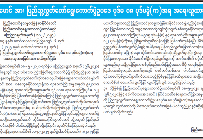 ရန်ကုန်မြို့နှင့် မန္တလေးမြို့အတွက် ရည်ညွှန်းလက်ကားဈေးနှုန်းများနှင့် ပြည်ထောင်စုနယ်မြေ နေပြည်တော်၊ တိုင်းဒေသကြီး/ပြည်နယ် မြို့တော်များအတွက် ရည်ညွှန်းလက်လီဈေးနှုန်းများ